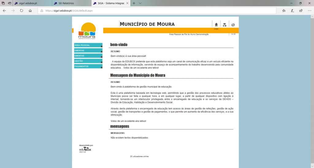 Esta é uma plataforma que permite ao município gerir, online, de forma rápida e eficaz, os vários processos educativos de responsabilidade municipal.