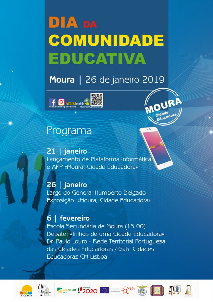 Já a 6 de fevereiro, a Escola Secundária de Moura recebe, pelas 15 horas, o debate “Trilhos de uma Cidade Educadora”, que conta com a participação de Paulo Louro da RTPCE e do Gabinete Cidades Educadoras da Câmara Municipal de Lisboa.