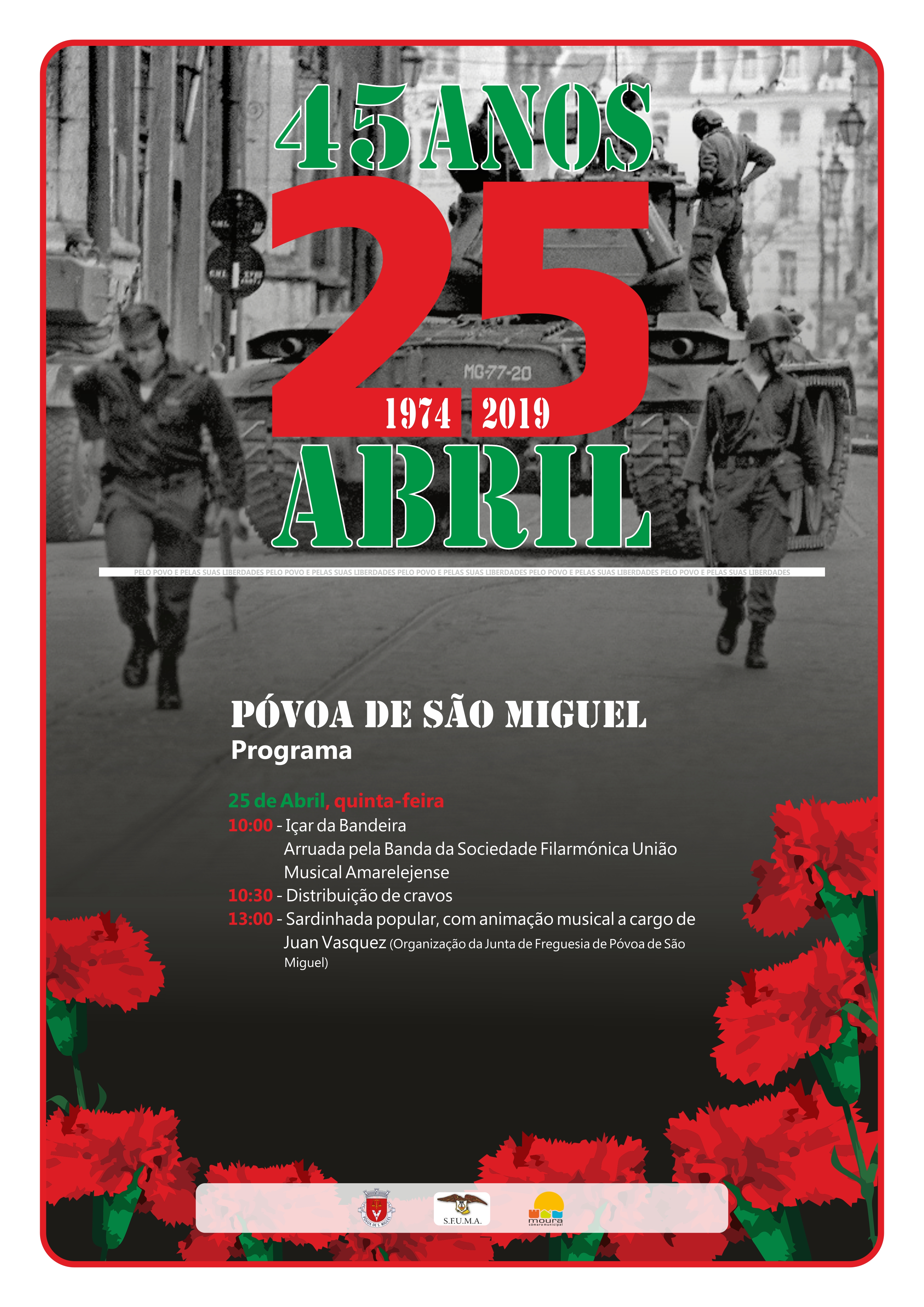 Em todas as freguesias do concelho haverá iniciativas de comemoração do 25 de Abril, cujo programa segue a baixo.