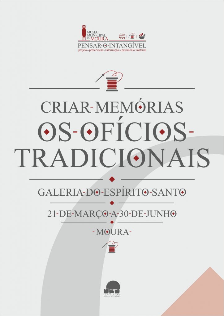 Estando patente ao público, até 30 de junho, na Galeria do Espírito Santo, em Moura, esta exposição pretende tratar o tema dos ofícios tradicionais do Concelho de Moura. Nela, poderemos apreciar a utensilagem pertencente aos ofícios a que foi dado destaque, fotografias antigas, e depoimentos em videograma. Esta recolha de testemunhos, foi realizada no âmbito do projeto “Pensar o intangível”, desenvolvido pelo sector Museus e Património Histórico da Câmara Municipal de Moura, que pretende valorizar e preservar o património imaterial do concelho.