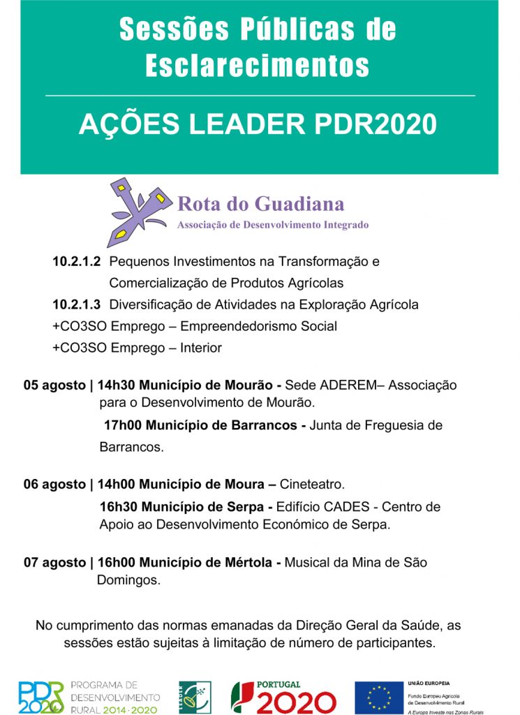 Neste contexto, a Rota do Guadiana – Associação de Desenvolvimento Integrado em parceria com a Câmara Municipal de Moura e o CLDS – 4G de Moura realiza, no próximo dia 6 de agosto, pelas 14:00, uma sessão pública de esclarecimentos sobre as ações LEADER PDR2020 no Cineteatro Caridade.