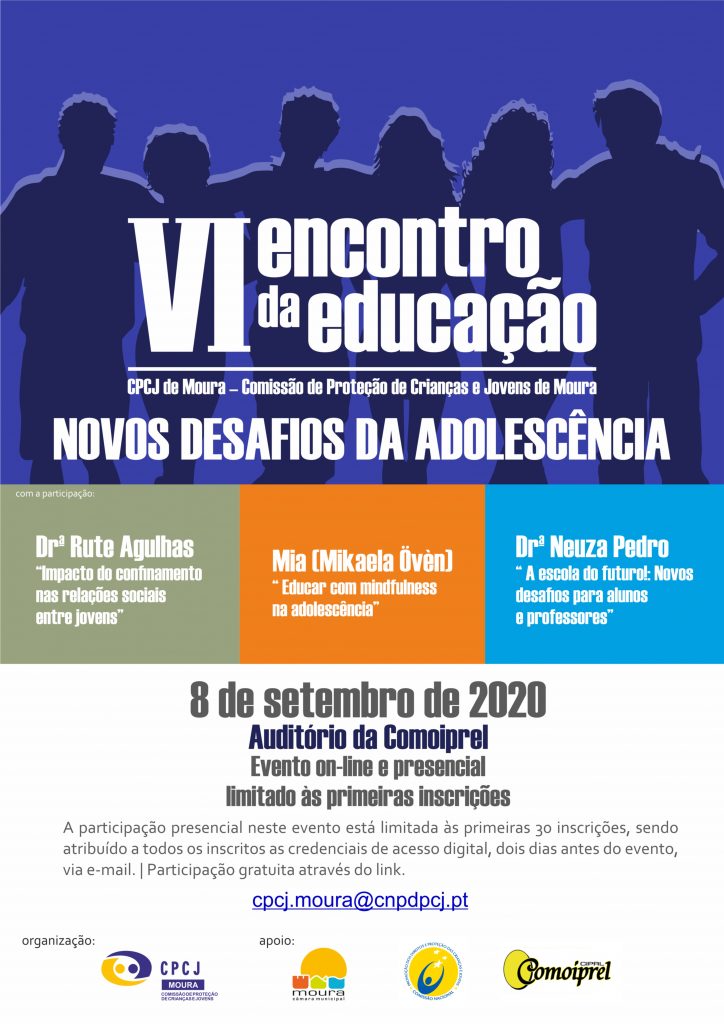 O tema do VI Encontro da Educação, “Novos desafios da adolescência”, servirá de mote para a intervenção de três renomadas oradoras: Rute Agulhas, psicóloga, psicoterapeuta e terapeuta familiar, cujo tema da apresentação será: “Impacto do confinamento nas relações sociais entre jovens”, em plataforma digital e Mikaela Övèn (Mia), Facilitadora de mindfulness, coach e palestrante, que fará a sua comunicação presencial sobre “Educar com mindfulness na adolescência”, no período da manhã. Neuza Pedro, professora Auxiliar com agregação do Instituto de Educação, especialista em e-learning e educação à distância, irá abordar a temática “A escola do futuro?: novos desafios para alunos e professores”, via plataforma digital, pelas 15h.