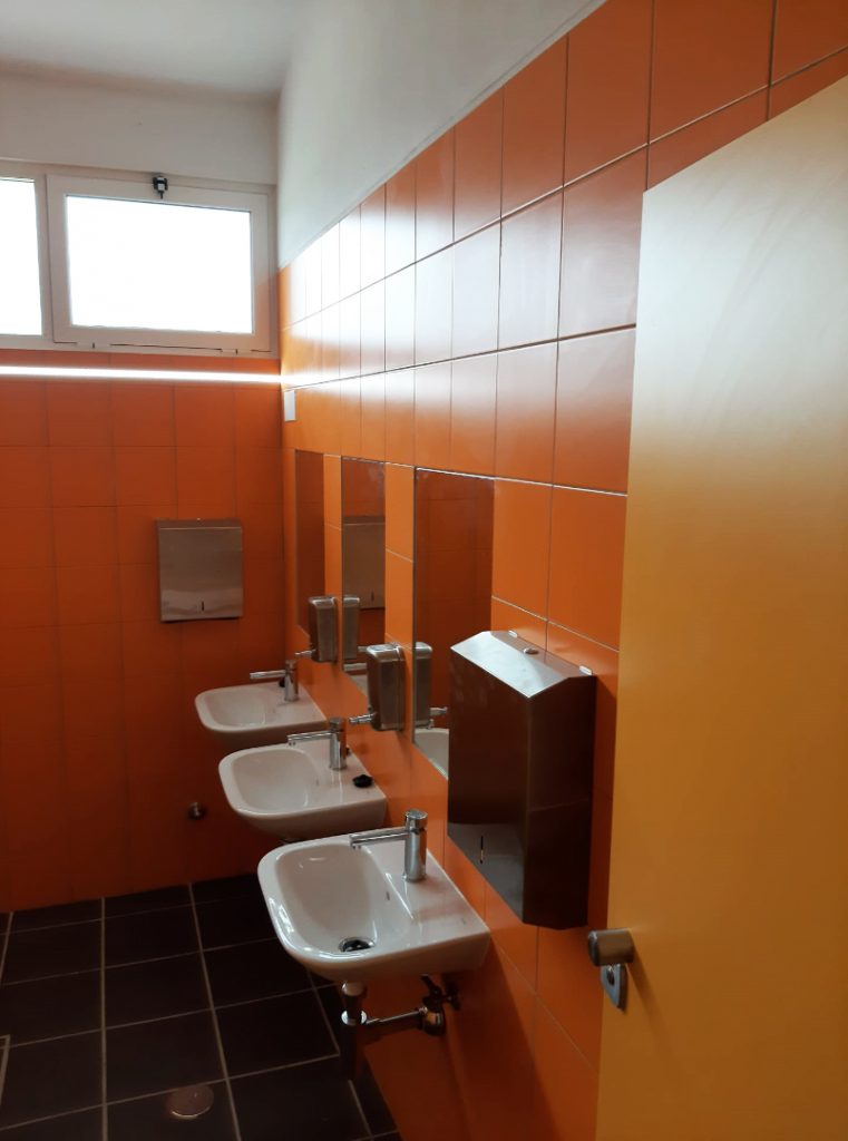 A intervenção consistiu na reabilitação e alteração das instalações sanitárias e na reparação da cobertura do edifício.