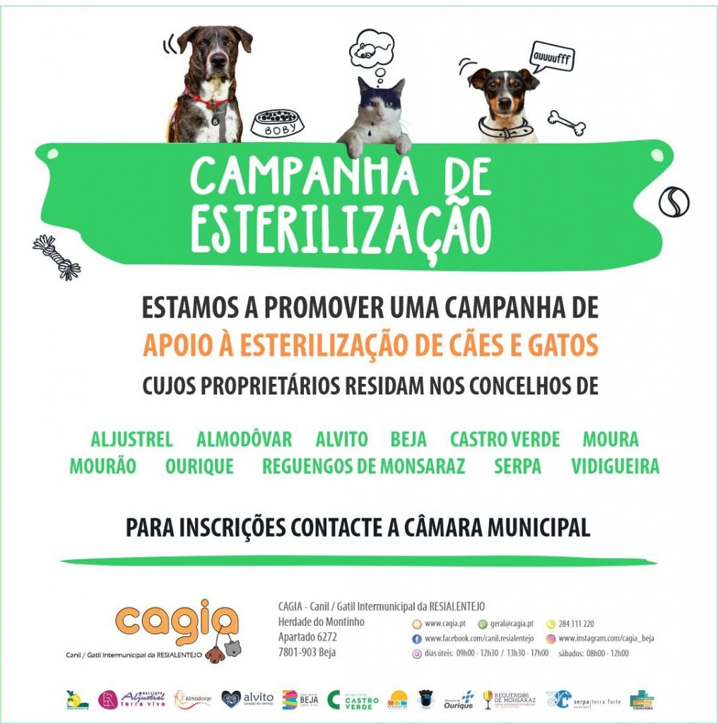 A Câmara Municipal de Moura informa que o CAGIA – Canil/Gatil Intermunicipal da Resialentejo, do qual Moura faz parte, está a promover uma campanha de esterilização para cães e gatos.