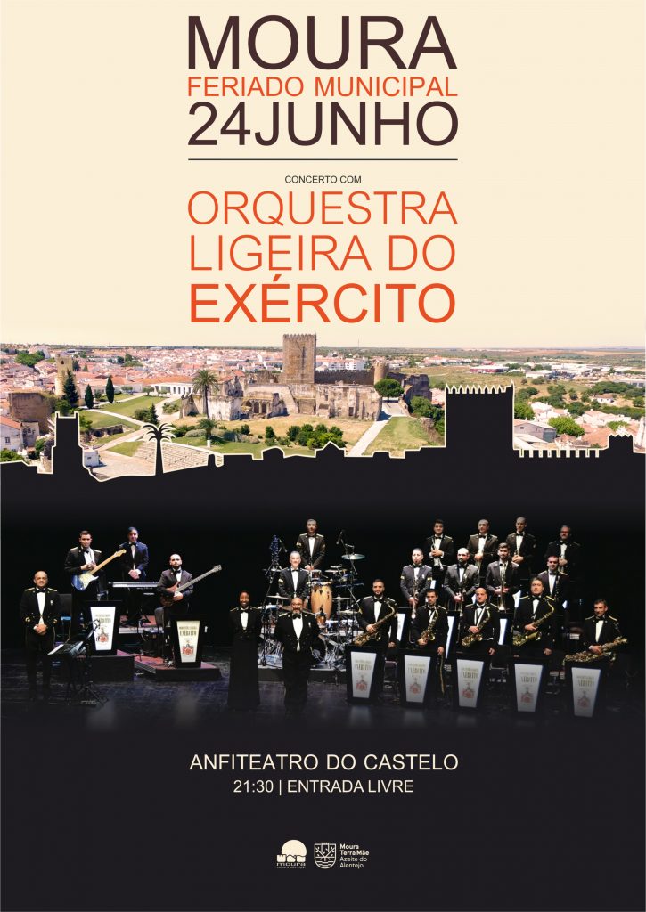 A Orquestra Ligeira do Exército vai participar nas comemorações do Feriado Municipal, através da realização de um concerto no Castelo de Moura, na noite de dia 24 de junho.