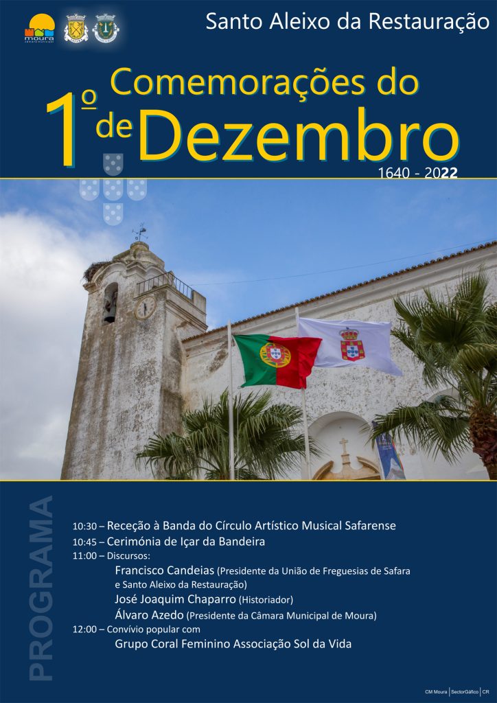 As comemorações do 1.º de Dezembro, promovidas pela Câmara Municipal de Moura e pela União de Freguesias de Safara e Santo Aleixo da Restauração, pretendem assinalar a heroicidade dos santoaleixenses nas batalhas contra os espanhóis.