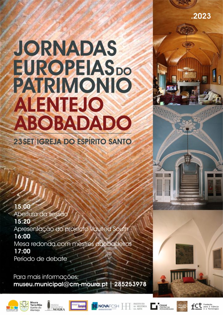 No âmbito das Jornadas Europeias do Património 2023, o projeto Vaulted South e a Câmara Municipal de Moura vão organizar o encontro “O Alentejo abobadado”, no dia 23 de setembro, em Moura. O projecto Vaulted South propõe a realização de uma sessão pública destinada a profissionais na área da arquitetura, engenharia, construção civil, história e património e à população em geral.