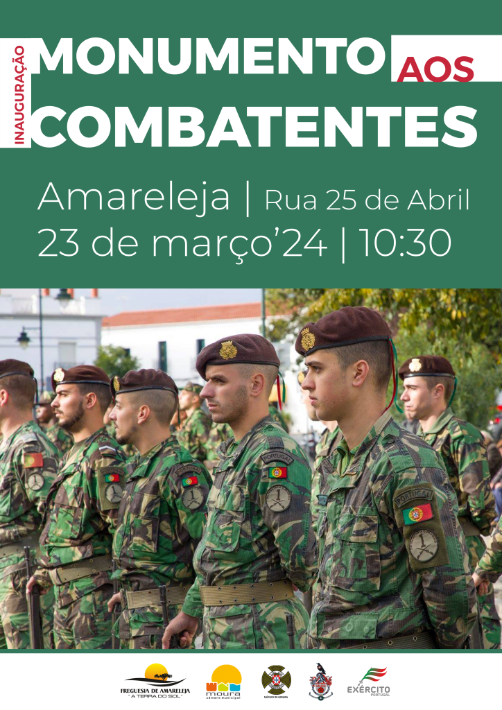 A Junta de Freguesia de Amareleja, em estreita articulação com a Câmara Municipal de Moura e com o Núcleo de Moura da Liga dos Combatentes, inaugura no próximo dia 23 de março, pelas 10:30, o Monumento aos Combatentes, na Rua 25 de Abril, em Amareleja.