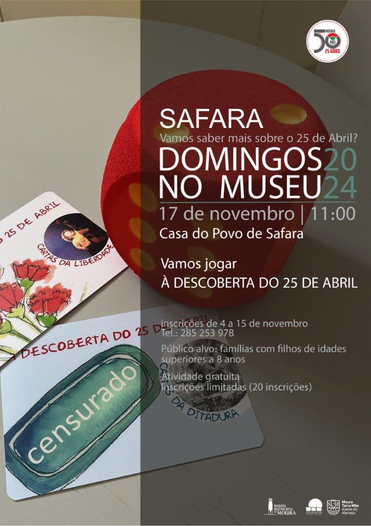 A próxima edição dos “Domingos no Museu”, com a atividade “Vamos falar mais sobre o 25 de Abril?”, será em Safara, no dia 17 de novembro.