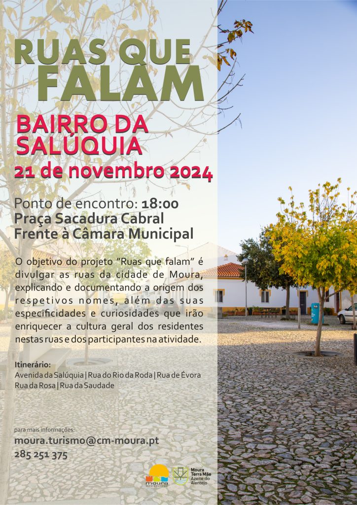 A sétima edição das “Ruas que falam” terá lugar amanhã, quinta-feira, 21 de novembro, às 18:00, com partida da Praça Sacadura Cabral, junto à entrada principal da Câmara Municipal de Moura.