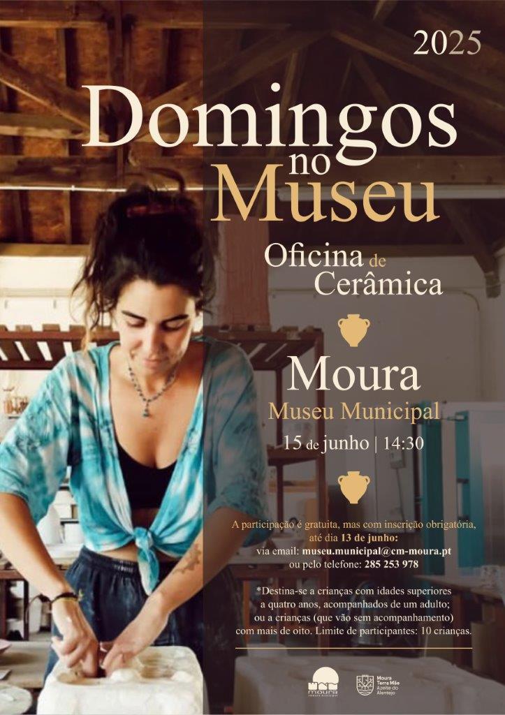 “Oficina de cerâmica” é o nome da próxima atividade dos “Domingos no Museu”, que se realizará no dia 15 de junho, às 14:30, no Museu Municipal de Moura.