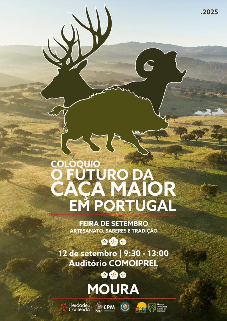 A Herdade da Contenda E.M., em parceria com a Câmara Municipal de Moura, o Clube Português de Monteiros – Associação Nacional de Caça Maior e a Federação Alentejana de Caçadores, promove no próximo dia 12 de setembro, entre as 09:30 e as 13:00, no auditório da COMOIPREL, o colóquio “O Futuro da Caça Maior em Portugal”.