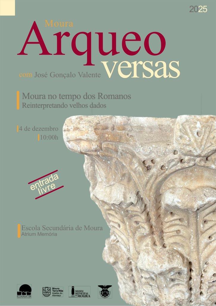 A próxima edição das “Arqueoversas” tem como tema “Moura, no tempo dos Romanos: reinterpretando velhos dados” e terá lugar amanhã, 4 de dezembro, às 10:00, no Átrio da Memória da Escola Secundária de Moura.