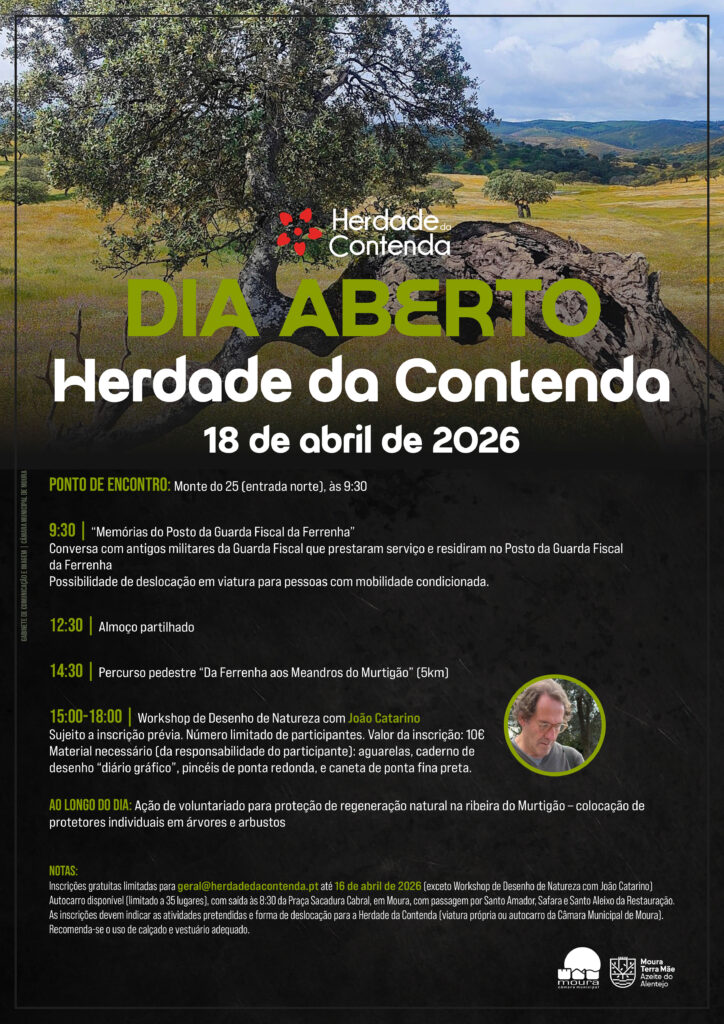 As inscrições devem ser efetuadas até 16 de abril, através do e-mail geral@herdadedacontenda.pt, indicando as atividades pretendidas e forma de deslocação.