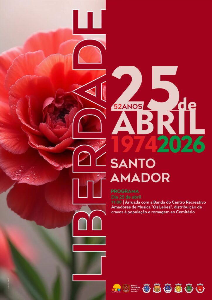 A Câmara Municipal de Moura apela à participação da população nas comemorações, convidando todos a celebrar os 52 anos do 25 de Abril, símbolo maior da liberdade em Portugal.