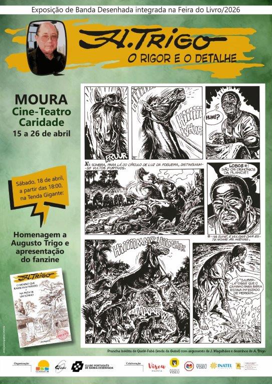 A exposição de Banda Desenhada “O rigor e o detalhe”, de Augusto Trigo, vai estar patente no Cine-Teatro Caridade, entre 15 e 26 de abril, inserida na 45.ª edição da Feira do Livro de Moura.